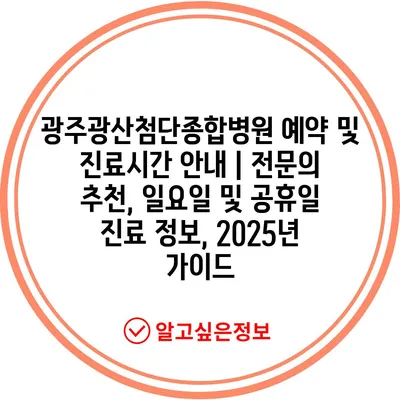 광주광산첨단종합병원 예약 및 진료시간 공지 | 전연락 추천, 일요일 및 공휴일 진료 정보, 2025년 설명서