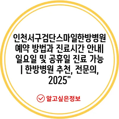 인천서구검단스마일한방병원 예약 방법과 진료시간 공지| 일요일 및 공휴일 진료 가능 | 한방병원 추천, 전연락, 2025″ 에 대해 자주 묻는 질문 TOP 5