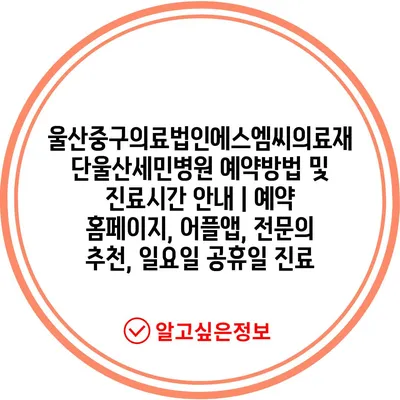 울산중구의료법인에스엠씨의료재단울산세민병원 예약방법 및 진료시간 공지 | 예약 홈페이지, 어플앱, 전연락 추천, 일요일 공휴일 진료 에 대해 자주 묻는 질문 TOP 5