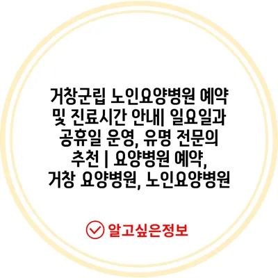 거창군립 노인요양병원 예약 및 진료시간 안내| 일요일과 공휴일 운영, 유명 전문의 추천 | 요양병원 예약, 거창 요양병원, 노인요양병원