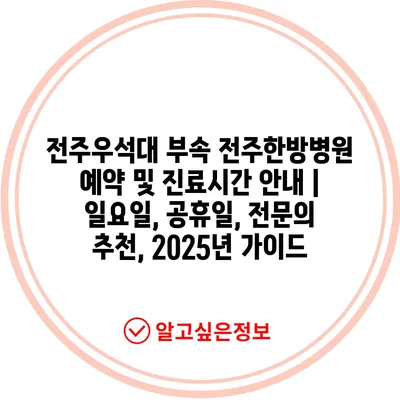✅ 전주한방병원의 진료시간과 예약 방법을 알아보세요.