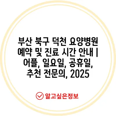 부산 북구 덕천 요양병원 예약 및 진료 시간 공지 | 어플, 일요일, 공휴일, 추천 전연락, 2025 에 대해 자주 묻는 질문 TOP 5
