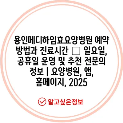 용인메디하임효요양병원 예약 방법과 진료시간 – 일요일, 공휴일 운영 및 추천 전연락 정보 | 요양병원, 앱, 홈페이지, 2025에 대한 내용을 소개합니다.