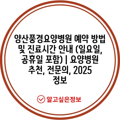 ✅ 양산풍경요양병원의 진료시간과 예약 방법을 알아보세요.
