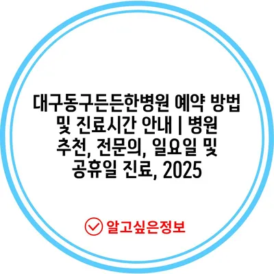 대구동구든든한병원 예약 방법 및 진료시간 공지 | 병원 추천, 전연락, 일요일 및 공휴일 진료, 2025 에 대해 자주 묻는 질문 TOP 5