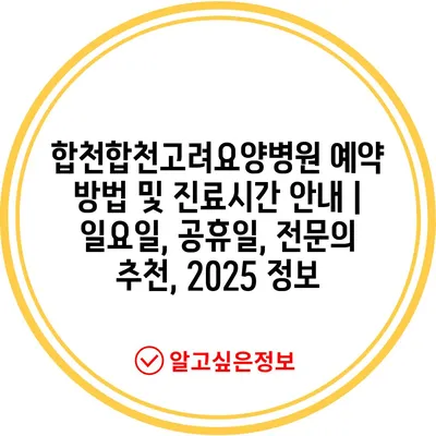 ✅ 합천고려요양병원의 예약 방법과 진료 시간을 자세히 알아보세요.