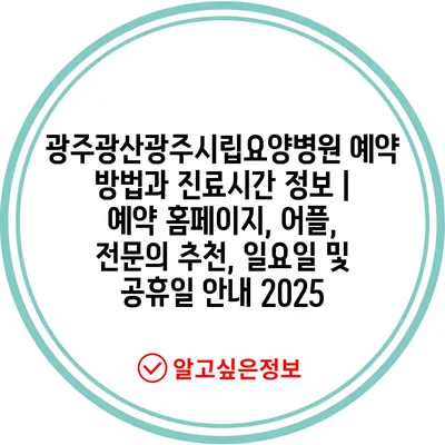 광주광산광주시립요양병원 예약 방법과 진료시간 정보 | 예약 홈페이지, 어플, 전연락 추천, 일요일 및 공휴일 공지 2025 에 대해 자주 묻는 질문 TOP 5