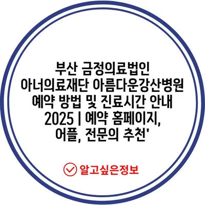 부산 금정의료법인 아너의료재단 아름다운강산병원 예약 방법 및 진료시간 공지 2025 | 예약 홈페이지, 어플, 전연락 추천’ 에 대해 자주 묻는 질문 TOP 5