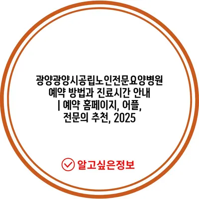 2025년 광양공립요양병원의 예약 방법을 쉽게 알아보세요.