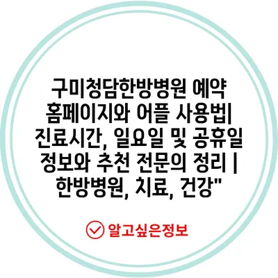 ✅ 구미청담한방병원의 진료시간과 예약 방법을 알아보세요.