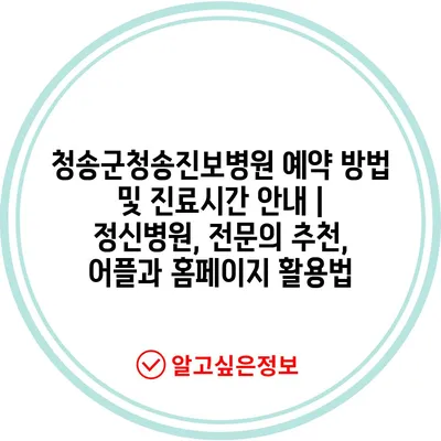 ✅ 청송진보병원의 예약 절차를 자세히 알아보세요.