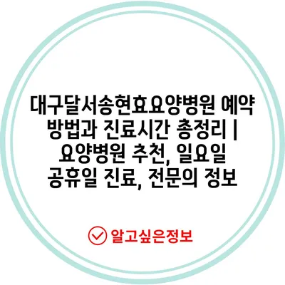 대구달서송현효요양병원 예약 방법과 진료시간 총정리 | 요양병원 추천, 일요일 공휴일 진료, 전문의 정보