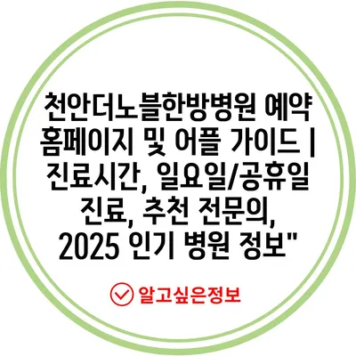 천안더노블한방병원 예약 홈페이지 및 어플 설명서 | 진료시간, 일요일/공휴일 진료, 추천 전연락, 2025 인기 병원 정보” 에 대해 자주 묻는 질문 TOP 5
