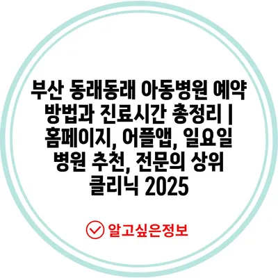 부산 동래동래 아동병원 예약 방법과 진료시간 총정리 | 홈페이지, 어플앱, 일요일 병원 추천, 전연락 상위 클리닉 2025 에 대해 자주 묻는 질문 TOP 5