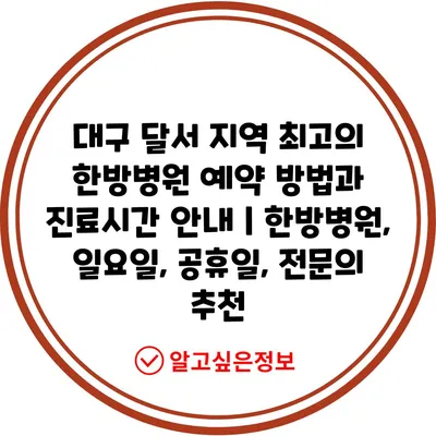 대구 달서 지역 최고의 한방병원 예약 방법과 진료시간 공지 | 한방병원, 일요일, 공휴일, 전연락 추천 에 대해 자주 묻는 질문 TOP 5