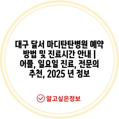 대구 달서 마디탄탄병원 예약 방법 및 진료시간 공지 | 어플, 일요일 진료, 전연락 추천, 2025 년 정보에 대해 자주 묻는 질문 TOP 5