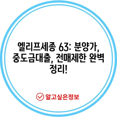 엘리프세종 63: 분양가, 중도금대출, 전매제한 완벽 정리!