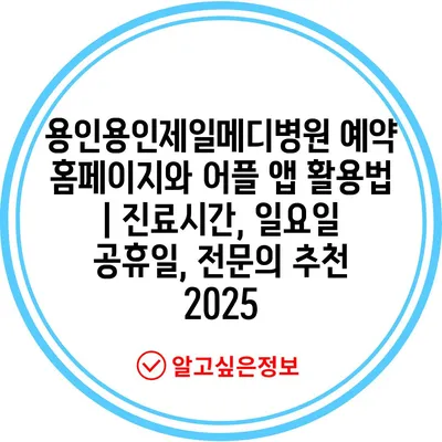 용인용인제일메디병원 예약 홈페이지와 어플 앱 활용법 | 진료시간, 일요일 공휴일, 전연락 추천 2025에 대해 알아보겠습니다.