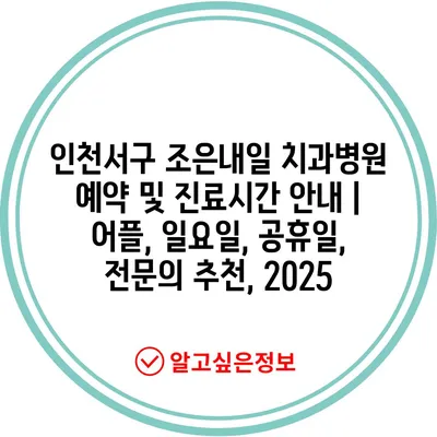 인천서구 조은내일 치과병원 예약 및 진료시간 공지 | 어플, 일요일, 공휴일, 전연락 추천, 2025 에 대해 자주 묻는 질문 TOP 5