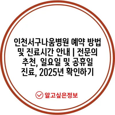 인천서구나움병원 예약 방법 및 진료시간 공지 | 전연락 추천, 일요일 및 공휴일 진료, 2025년 확인하기에 대해 알아보겠습니다.