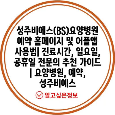 ✅ 성주비에스 요양병원의 예약 과정과 팁을 알아보세요.