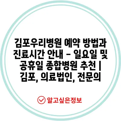 ✅ 김포우리병원의 예약 꿀팁과 진료시간을 지금 바로 확인하세요!
