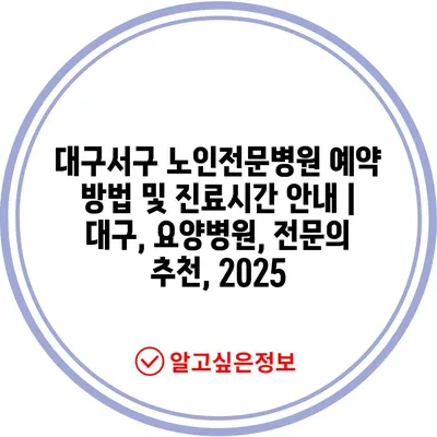 ✅ 대구서구 노인전문병원 예약 방법을 자세히 알아보세요.