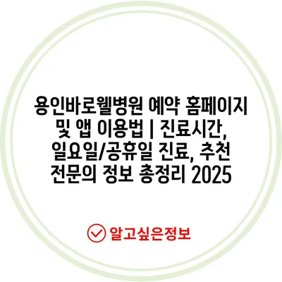 용인바로웰병원 예약 홈페이지 및 앱 이용법 | 진료시간, 일요일/공휴일 진료, 추천 전연락 정보 총정리 2025에 대한 내용입니다.