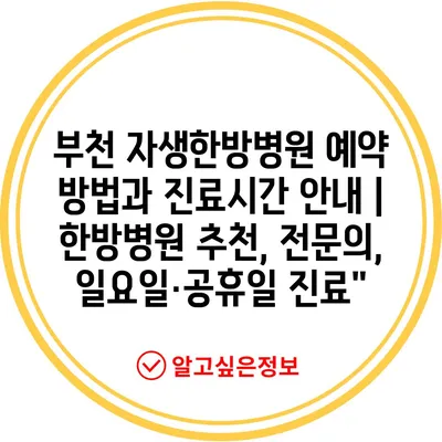 ✅ 부천 자생한방병원에서의 예약 방법과 진료시간을 알아보세요.