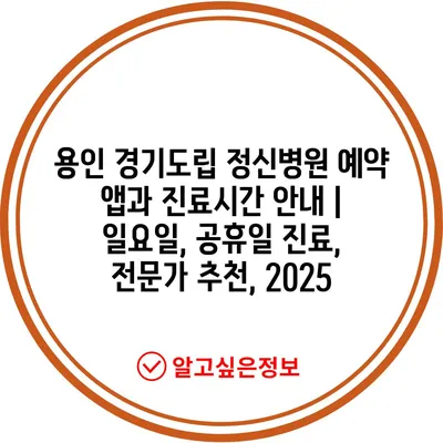 용인 경기도립 정신병원 예약 앱과 진료시간 공지 | 일요일, 공휴일 진료, 전문가 추천, 2025 에 대해 자주 묻는 질문 TOP 5