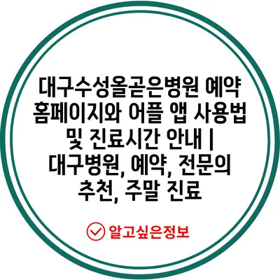 ✅ 대구수성올곧은병원 예약 방법과 진료시간을 지금 바로 확인하세요!