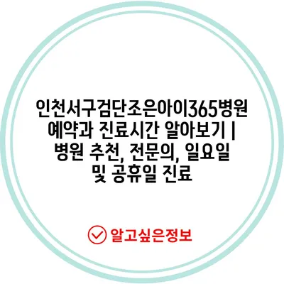 ✅ 인천서구검단조은아이365병원의 진료시간과 예약 방법을 알아보세요.