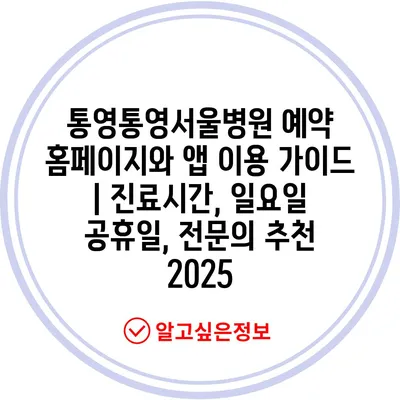 통영통영서울병원 예약 홈페이지와 앱 이용 설명서 | 진료시간, 일요일 공휴일, 전연락 추천 2025에 대해 설명제공합니다.
