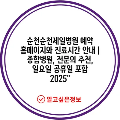 순천순천제일병원 예약 홈페이지와 진료시간 공지 | 종합병원, 전연락 추천, 일요일 공휴일 포함 2025″ 에 대해 자주 묻는 질문 TOP 5