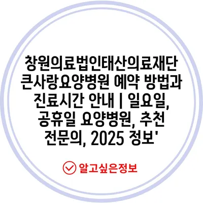 창원의료법인태산의료재단 큰사랑요양병원 예약 방법과 진료시간 공지 | 일요일, 공휴일 요양병원, 추천 전연락, 2025 정보’ 에 대해 자주 묻는 질문 TOP 5