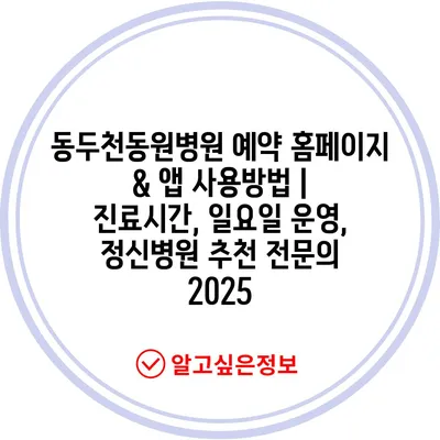 ✅ 동두천동원병원의 예약 방법과 진료 시간을 자세히 알아보세요.