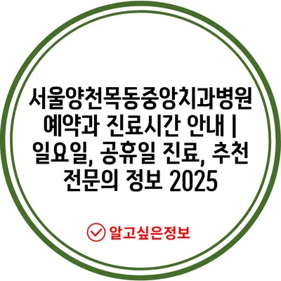 서울양천목동중앙치과병원 예약과 진료시간 공지 | 일요일, 공휴일 진료, 추천 전연락 정보 2025 에 대해 자주 묻는 질문 TOP 5