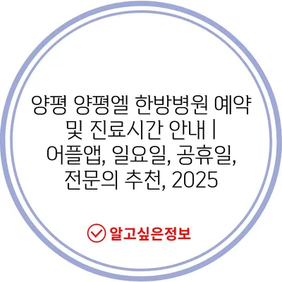 양평 양평엘 한방병원 예약 및 진료시간 공지 | 어플앱, 일요일, 공휴일, 전연락 추천, 2025 에 대해 자주 묻는 질문 TOP 5