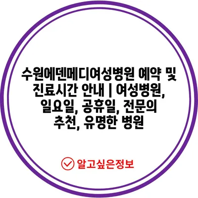✅ 수원에덴메디여성병원의 진료시간과 예약 방법을 알아보세요!