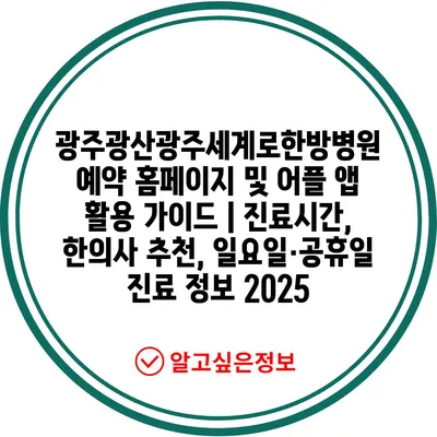 광주광산광주세계로한방병원 예약 홈페이지 및 어플 앱 활용 설명서 | 진료시간, 한의사 추천, 일요일·공휴일 진료 정보 2025 에 대해 자주 묻는 질문 TOP 5