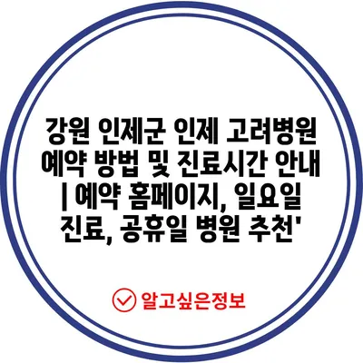 ✅ 인제 고려병원 진료시간과 예약 방법을 자세히 알아보세요.