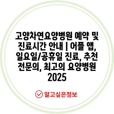 고양차연요양병원 예약 및 진료시간 공지 | 어플 앱, 일요일/공휴일 진료, 추천 전연락, 최고의 요양병원 2025