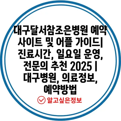 대구달서참조은병원 예약 사이트 및 어플 가이드| 진료시간, 일요일 운영, 전문의 추천 2025 | 대구병원, 의료정보, 예약방법