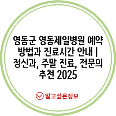 영동군 영동제일병원 예약 방법과 진료시간 공지 | 정신과, 주말 진료, 전연락 추천 2025 에 대해 자주 묻는 질문 TOP 5