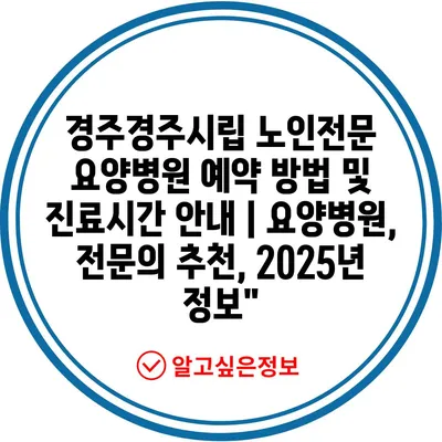 ✅ 경주경주시립 노인전문 요양병원 예약 방법을 자세히 알아보세요.