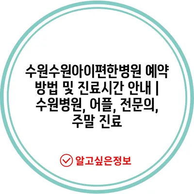 ✅ 수원아이편한병원의 진료시간과 예약 방법을 자세히 알아보세요.