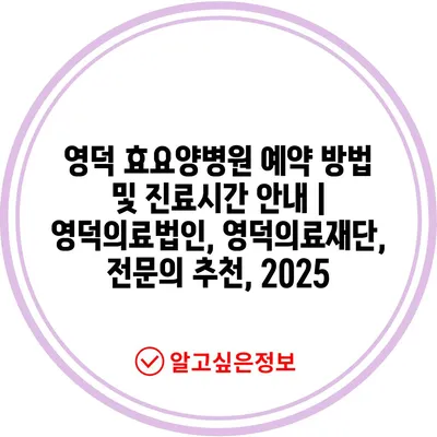 ✅ 영덕 효요양병원 예약 방법을 자세히 알아보세요.