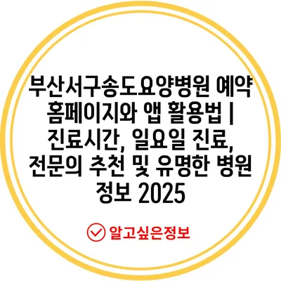 부산서구송도요양병원 예약 홈페이지와 앱 활용법 | 진료시간, 일요일 진료, 전연락 추천 및 유명한 병원 정보 2025에 대해 소개합니다.