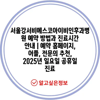 서울강서비에스코아이비인후과병원 예약 방법과 진료시간 공지 | 예약 홈페이지, 어플, 전연락 추천, 2025년 일요일 공휴일 진료 에 대해 자주 묻는 질문 TOP 5