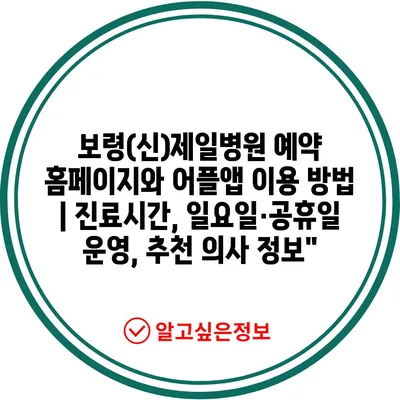 보령(신)제일병원 예약 홈페이지와 어플앱 이용 방법 | 진료시간, 일요일·공휴일 운영, 추천 의사 정보” 에 대해 자주 묻는 질문 TOP 5